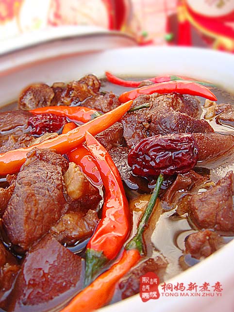中国人过春节最重要的节目就是合家团圆吃顿年夜饭,辛苦忙碌了一年,大家聚在一起吃吃喝喝,其乐融融。 继续奉上我的第二道菜:喜气洋洋----红红火火羊肉煲,小红椒代表红红火火,一团喜气;羊取自洋谐音,祝福大家喜气洋洋过大年,来年的日子更加红红火火!