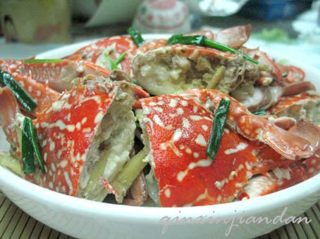 上星期去到重庆出差,朋友说试试重庆海鲜的做法,呵呵。还是算了吧,去到重庆当然要吃地道的重庆菜嘛。海鲜,俺回来吃好了。 吃了重庆的火锅,好吃,其实也不算太辣。 今晚看到有肥美的花蟹卖,比以前的要大一个个头,就来个姜葱焗花蟹吧。螃蟹俺爱吃,啥蟹都成。
