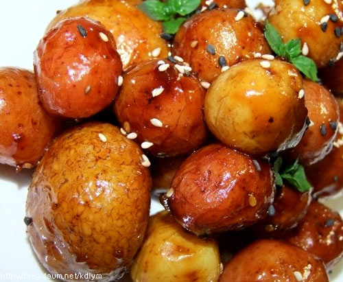 及以下步骤:用一锅把煮熟的小土豆和炖煮料倒在一起,大火熬煮。 开锅后调成中火,炖煮时要时常把翻动一下,这样土豆入味均匀。 等锅中的料还剩一点时,调成大火,加入香油、糖稀、芝麻翻炒。 土豆皮越皱说明越入味,色泽一定要亮。 开水中倒入小土豆和 1小勺盐,把小土豆煮熟。 把炖煮料混合在一起,搅拌均匀。 用一锅把煮熟的小土豆和炖煮料倒在一起,大火熬煮。 开锅后调成中火,炖煮时要时常把翻动一下,这样土豆入味均匀。 等锅中的料还剩一点时,调成大火,加入香油、糖稀、芝麻翻炒。 土豆皮越皱说明越入味,色泽一定要亮。