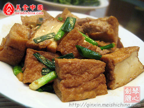 及以下步骤:待猪肉煮熟后,加入葱段,炒均匀,然后装盘就行了。 将猪肉切丝。 将豆腐准备好。 将猪肉切丝。 将豆腐准备好。 将豆腐切大块。 起油锅,爆香葱头,蒜头,下肉丝炒香。 加入炸豆腐。 添加适量的水,盐,生抽稍煮一会。 待猪肉煮熟后,加入葱段,炒均匀,然后装盘就行了。