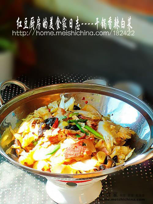 白菜炒的时候只是8分熟,放入干锅中后加盖焖之片刻再吃会非常有味。