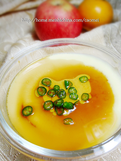 及以下步骤:用保鲜膜把网盖住,上面用牙签插几个小洞。 蒸锅内的水烧开后把鸡蛋液放入,中小火蒸。 蒸个12分钟左右。 把鸡蛋膏小心的拿出,用透明碗可以很轻松看到已经熟了,倒入适量酱油。 加入几滴香油。 在上层撒上一层尖椒碎即可。 蒸个12分钟左右。 把鸡蛋膏小心的拿出,用透明碗可以很轻松看到已经熟了,倒入适量酱油。 加入几滴香油。 在上层撒上一层尖椒碎即可。