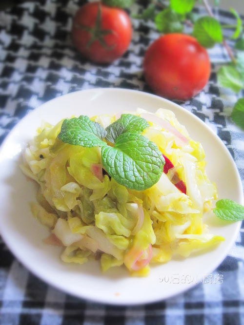 及以下步骤:待水分收干后,加入用两勺勺料酒、两勺白醋、六勺果汁调好的汁。大火煮让水分快速收干。 水分快收干时加入少许胡椒粉,翻炒均匀即可。 洋葱洗净切丝、卷心菜洗净切丝。 锅中放入少许的油,油稍微热后下入洋葱丝小火炒香。 下入切好的卷心菜丝。 翻炒到卷心菜略微变软。 加入较多的白醋、盐、以及花椒稍微翻动混合均匀后将原料在锅中摊匀。 小火煮,不要翻动原料,让水分慢慢煮干,卷心菜充分的入味。 待水分收干后,加入用两勺勺料酒、两勺白醋、六勺果汁调好的汁。大火煮让水分快速收干。 水分快收干时加入少许胡椒粉,翻炒均匀即可。