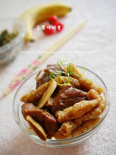 及以下步骤:煎好的排骨拨一边,下姜蒜爆香。 炒匀排骨,加入适量冷水;大火煮开,小火炖30分钟。 倒入豆果,再炖15分钟。调好味即可盛入碗中。 姜蒜去皮、洗净、切片备用。 排骨中倒入生抽。 加入蒸鱼豉油,腌制24小时。 锅中油热,下排骨,稍稍煎一会。 煎好的排骨拨一边,下姜蒜爆香。 炒匀排骨,加入适量冷水;大火煮开,小火炖30分钟。 倒入豆果,再炖15分钟。调好味即可盛入碗中。
