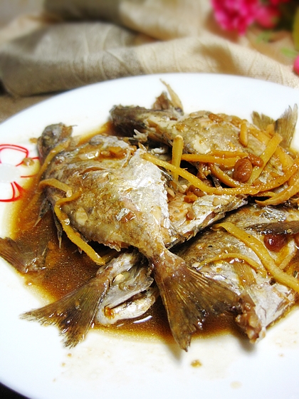 及以下步骤:加适量生抽。 加几粒味精。 盖上锅盖煮10分钟即可。 一面煎一下后翻面加入姜丝。 倒少许盐入锅内。 放入两大勺黄豆酱。 加少许水。 加适量生抽。 加几粒味精。 盖上锅盖煮10分钟即可。