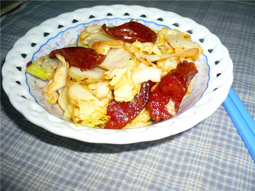 菜白菜炒腊肠美味诠释: