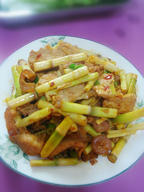 及以下步骤:加入适量的清水,调入盐,生抽,鸡粉炒匀略烧煮约二分钟使笋入味,最后放入香醋少许,老抽少许炒匀放入葱花即可上碟。 将野山笋笋头老的一部分摘除。 五花肉切片。 将野山笋笋头老的一部分摘除。 五花肉切片。 葱切花,姜切片。 处理好的山笋入滚水里焯断生。 锅里放少许锅中小火将五花肉煸干身。 将肉推至一边,放入姜片爆香,加入半匙豆瓣酱爆出红油。 加入适量的清水,调入盐,生抽,鸡粉炒匀略烧煮约二分钟使笋入味,最后放入香醋少许,老抽少许炒匀放入葱花即可上碟。