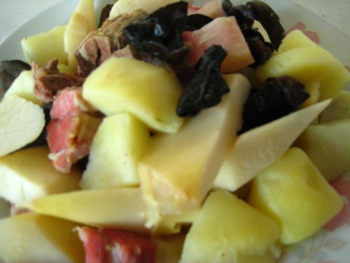 黑木耳(适量) / 土豆(适量) / 咸肉(适量) / 春笋(适量)