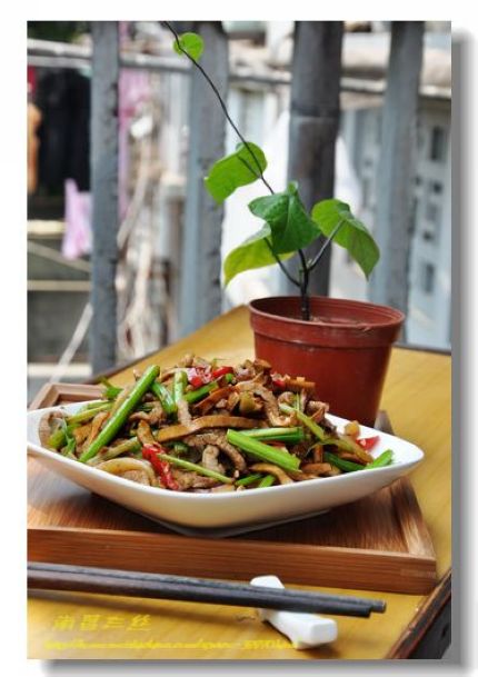 及以下步骤:锅内下油烧热 下大蒜籽、红辣椒爆出香味、放入适量老抽调味 下香干、芹菜丝,翻炒 下米酒翻炒均匀 最后加入焯水后的肉丝、榨菜丝 最后加入焯水后的肉丝、榨菜丝 下香干、芹菜丝,翻炒 下米酒翻炒均匀 最后加入焯水后的肉丝、榨菜丝 最后加入焯水后的肉丝、榨菜丝