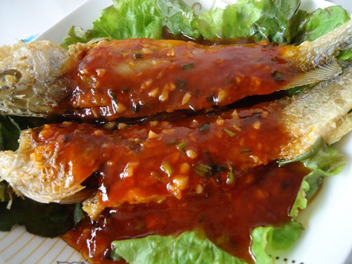 端午吃黄鱼,油炸过在用番茄酱喷一下好吃极了。
