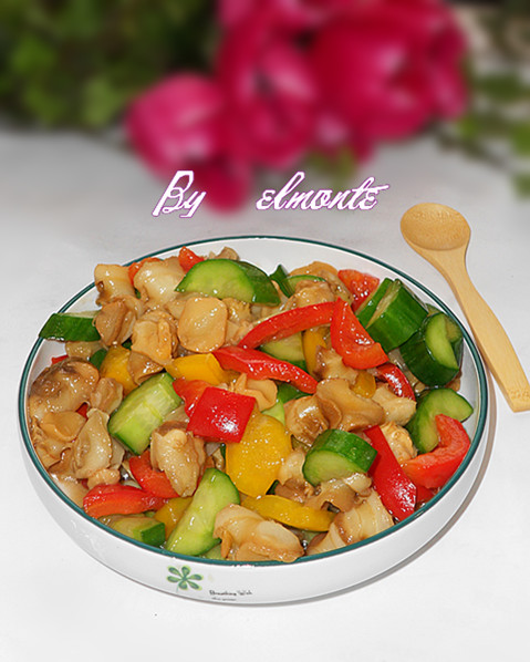 及以下步骤:放入螺肉炒2-3分钟。 放入蚝油和糖继续炒3,4分钟。 倒入水淀粉勾芡即可。 颜色艳丽,爽脆可口。 热油锅,把姜片,葱白爆香。 放入黄瓜,红黄椒炒片刻。 放入螺肉炒2-3分钟。 放入蚝油和糖继续炒3,4分钟。 倒入水淀粉勾芡即可。 颜色艳丽,爽脆可口。
