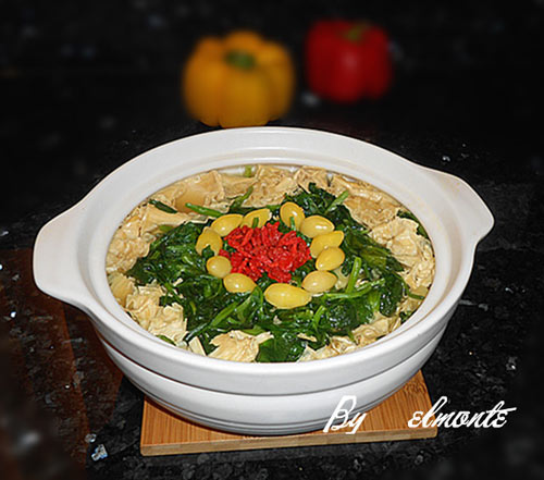 女儿很皮,前段时间往我车子的音响里塞了好几个硬币,导致短路不响了,连时间都没办法看了。上星期lg花了一天时间终于把它修好了,现在他称自己是专家了,如果没有后屋租客的提点,他才没这么快找出原因呢!保险丝也是租客给的,所以没花一分钱,不过却花了时间,但是他还是蛮有成就感的。 为了这么奖励辛苦工作的人,做了这个煲仔菜,lg回来一看,就笑开了,这不是广告听来的吗?看来昨天没白干啊! 大豆苗是荷兰豆(豌豆)的嫩尖,富含维生素a、维生素c、钙和磷等营养成分。此外,还含有大量的抗酸性物质,具有很好的防老化功能,能起到有效的排毒作用。大豆苗吃起来清香滑嫩,味道鲜美独特。在广东称这种嫩尖为大豆苗,豌豆发的芽菜叫小豆苗。