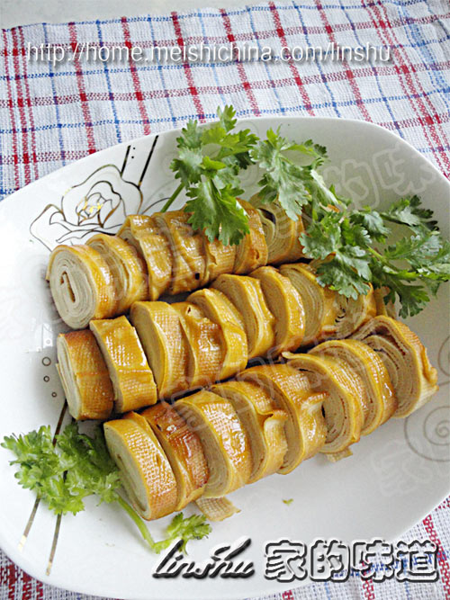 这是一道凉菜,可做为冷盘用。用东北本地产的黄豆做成的干豆腐豆香浓郁,加上鸡汤的卤制到最后的熏制,更增加了豆腐的口感,回味无穷。