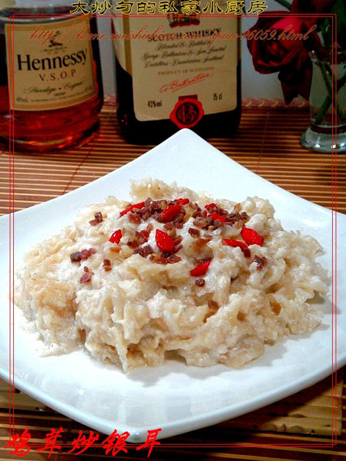 银耳,在中国的饮食历史和饮食文化中都占有一席之地,他自古就被人们列入八珍之列,同燕窝、熊掌、猂鼻、飞龙鸟等齐名,是上好的进补原料。 但随着时代的进步和种植业利用现代技术手段,人们开始大面积的人工种植银耳,使其价格暴跌,变成了和黑木耳基本相同用的价格! 自古,福建就是我国银耳的主产地,它负责供应全国和出口到世界各地。现在人们早已不再把它视为珍品,但在故宫博物院里的,帝后膳底档中记载,历代帝王所食用的银耳,都是产自我国福建省,地方官员们年年要负责向朝廷进贡指定数量的银耳。直至清代一直都把它视为特供珍品。 银耳的做法很多,无论是在满汉全席、孔府菜和官府菜等高级历史文化名菜的食单中均有记载,有用银耳制作的各式菜肴。比如,冰糖银耳、清汤银耳、鸽蛋炖银耳云片鸽蛋扒银耳、翡翠银耳、银耳百宝羹等等,还有各式的炒银耳、拌银耳琳琅满目! 今天制作一款,闽菜中盛名已久的鸡茸炒银耳。过去,人们把它视为高档菜,现在人人均可在家中制作,具体制作如下;