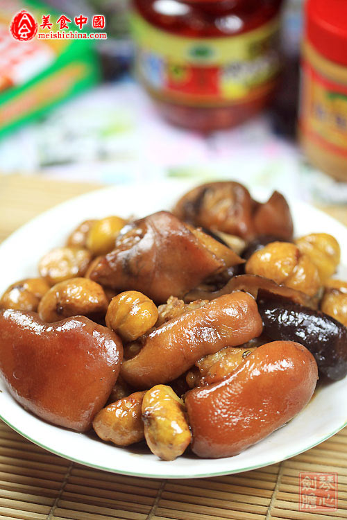 红焖猪蹄,是闽菜的一款经典菜式。在厦门,很多的酒楼食肆,都拿它来当招牌菜。虽然各家的做法不同,不过,基本上都会用上板栗和一些香料。这个菜香味浓郁,猪蹄软糯可口,非常好吃。