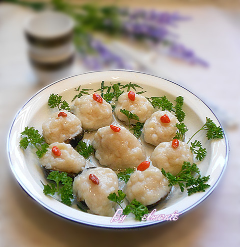 及以下步骤:在鱼茸上放上枸杞装饰。 锅放水烧开,把香菇盒子放入。 大火蒸10分钟。 小锅放入高汤烧开,倒入淀粉水勾个薄芡。 在鱼茸香菇盒子上淋上薄芡即可。 在鱼茸上放上枸杞装饰。 锅放水烧开,把香菇盒子放入。 大火蒸10分钟。 小锅放入高汤烧开,倒入淀粉水勾个薄芡。 在鱼茸香菇盒子上淋上薄芡即可。