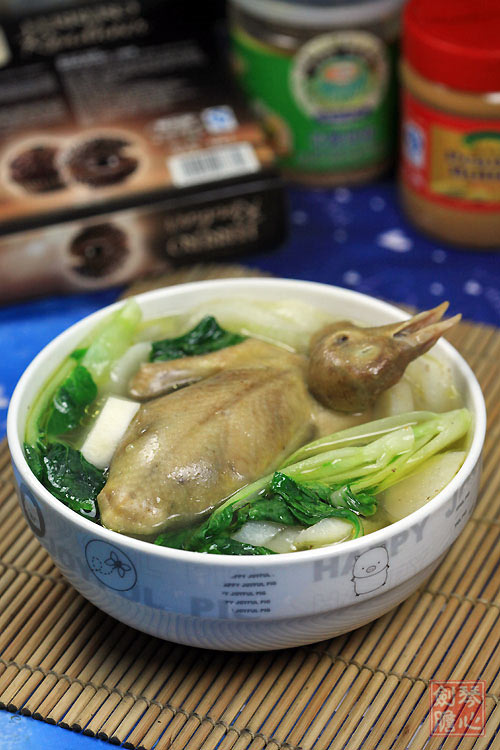 5、炖好的鸽子加入焯水的白菜苗,加入盐、鸡精调味就好了。