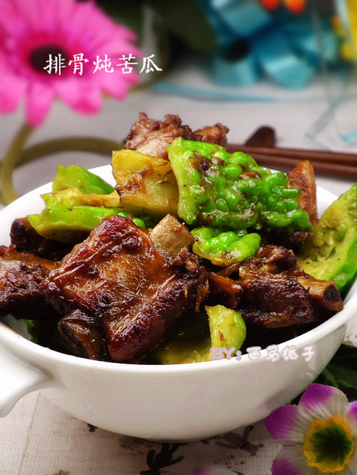 及以下步骤:把苦瓜块焯水备用。 炖至排骨快熟时加入焯水的苦瓜和盐。 继续焖炖20分钟,大火收干汤汁即可。 加入酱油和冰糖继续煸炒至冰糖溶化。 加入葱姜 八角 。 加入水,没过排骨。烧开转小火焖炖40分钟。 苦瓜洗净去掉瓤和籽,切成块。 把苦瓜块焯水备用。 炖至排骨快熟时加入焯水的苦瓜和盐。 继续焖炖20分钟,大火收干汤汁即可。