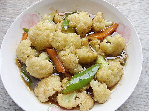 及以下步骤:大约炒1分钟,放入少量的水,盖上盖子焖3分钟。 菜花焖软后,倒入胡萝卜片翻炒片刻。 大约半分钟,倒入青椒片翻炒。 青椒断生变色,倒入适量的蚝油。 蚝油拌匀后再烧片刻(不超过半分钟)使之入味,即可关火装盘。 大约炒1分钟,放入少量的水,盖上盖子焖3分钟。 菜花焖软后,倒入胡萝卜片翻炒片刻。 大约半分钟,倒入青椒片翻炒。 青椒断生变色,倒入适量的蚝油。 蚝油拌匀后再烧片刻(不超过半分钟)使之入味,即可关火装盘。