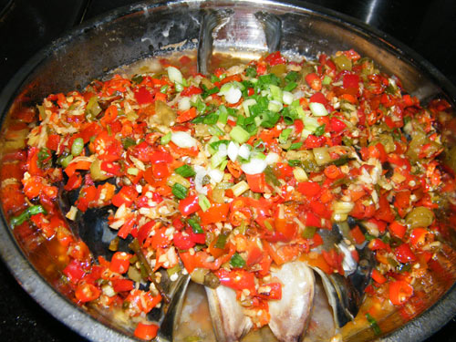 盐(适量) / 葱(适量) / 姜(适量) / 鸡精(适量) / 蒸鱼豉油(适量) / 小朝天椒(适量) / 小米泡椒(适量) / 湖南剁椒(适量)