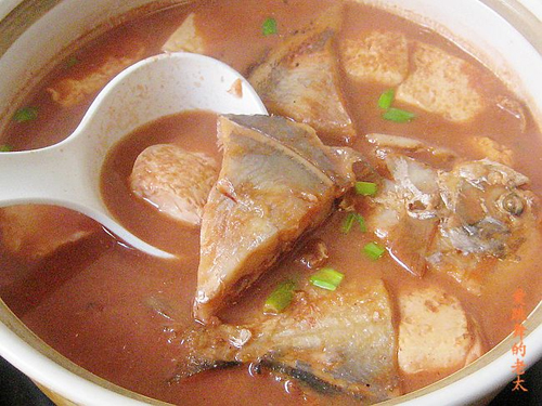 2.这道菜,豆腐与鱼一起放下去煮,比较入味,好吃。