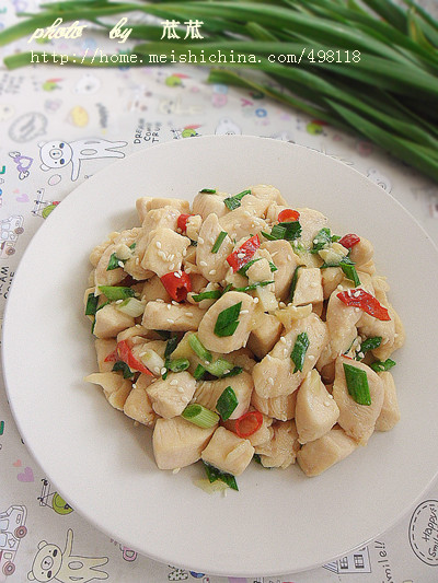 及以下步骤:锅内倒少许油,把蒜末爆香。(放入一半的蒜末) 把腌制好的鸡胸肉放入。 微微翻炒变白之后,加入小辣椒,和另一半的蒜末。(不喜欢蒜的味道太重的话可不加蒜末) 再加入一点点的白糖。(依个人口味) 再放入葱花翻炒会后,关火。 最后,撒上白芝麻即可。 简单,快捷的下饭菜。(以上所有调料可根据自己口味,和鸡胸肉的多少来增加) 再放入葱花翻炒会后,关火。 最后,撒上白芝麻即可。 简单,快捷的下饭菜。(以上所有调料可根据自己口味,和鸡胸肉的多少来增加)