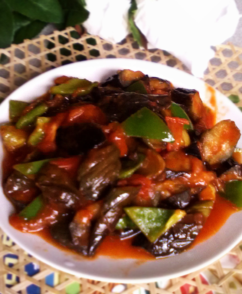 及以下步骤:茄子洗净,滚刀切块,。,入锅炸制熟透,捞出沥干油,备用。 热锅凉油,油热放入西红柿炒透。 茄子洗净,滚刀切块,。,入锅炸制熟透,捞出沥干油,备用。 热锅凉油,油热放入西红柿炒透。 茄子洗净,滚刀切块,。,入锅炸制熟透,捞出沥干油,备用。 热锅凉油,油热放入西红柿炒透。 茄子洗净,滚刀切块,。,入锅炸制熟透,捞出沥干油,备用。 热锅凉油,油热放入西红柿炒透。 放入番茄酱煸炒几下,放茄子煸炒。 放入青椒煸炒几下,放盐、鸡粉出锅!