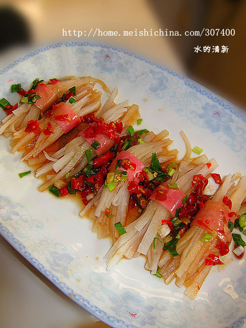 2、萝卜在焯水时,时间要控制好。我一般是2-3秒即捞了。当然也得根据你切的丝的比例。