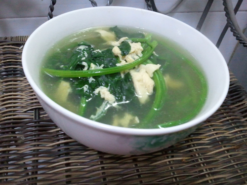 本来就是一碗很清淡很清淡的菠菜鸡蛋汤,可是吃饭的时候老公说这个是大力水手的最爱,于是咱们就管它叫大力水手汤吧,哈哈。