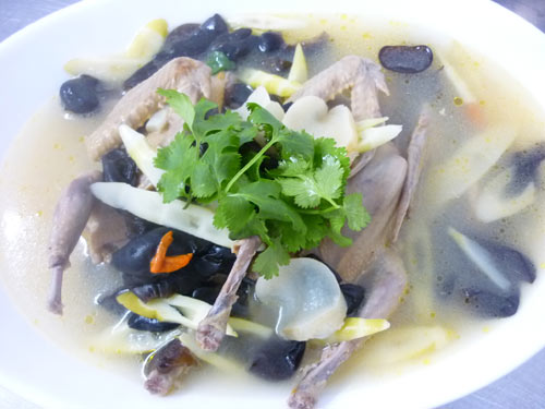 【天麻炖乳鸽】也是一点传统的炖汤,中医认为乳鸽可以补气血,清肺顺气。对肾虚体弱,心神不宁,儿童成长,体力透支者均有功效。乳鸽骨中含有丰富的软骨素,能增强皮肤弹性,改善血液循环。天麻是一味常用且名贵的中药,有治疗头痛眩晕等多种功效。