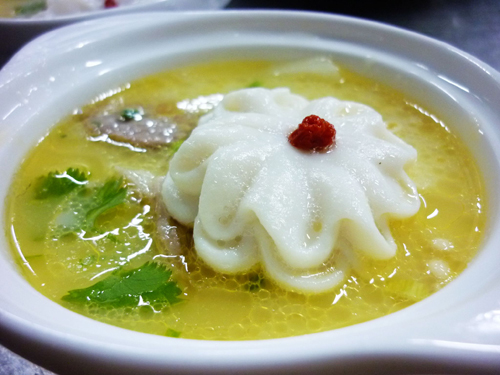及以下步骤:把鱼茸装入裱花袋挤出菊花形的鱼圆。 中间放一颗枸杞子点缀。 滑入水盆中,小火汆熟。 把煮好的羊腿肉剔出,切成片。娃娃菜切好,金针菇洗净。 娃娃菜和金针菇汆水后放入锅仔中。 起锅放入少许葱油,加野山椒煸一下,放入切好的羊肉,加入羊肉白汤烧开调味,倒入锅仔中。 放入汆熟的菊花鱼圆。点燃锅仔底座酒精。 娃娃菜和金针菇汆水后放入锅仔中。 起锅放入少许葱油,加野山椒煸一下,放入切好的羊肉,加入羊肉白汤烧开调味,倒入锅仔中。 放入汆熟的菊花鱼圆。点燃锅仔底座酒精。