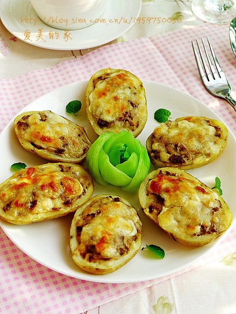 及以下步骤:将土豆泥倒入炒好的牛肉丁中拌匀。 尝一下再适当加盐及黑胡椒粉调味。 将拌好的牛肉土豆泥用勺子装入到挖空的土豆壳中,填整齐。 表面撒上少许马苏里芝士。 放入预热好220的烤箱中烤8—10分钟至表面金黄即可出炉。 将土豆泥倒入炒好的牛肉丁中拌匀。 尝一下再适当加盐及黑胡椒粉调味。 将拌好的牛肉土豆泥用勺子装入到挖空的土豆壳中,填整齐。 表面撒上少许马苏里芝士。 放入预热好220的烤箱中烤8—10分钟至表面金黄即可出炉。