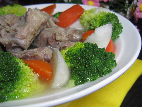 山药营养价值: 山药的最大特点是含有大量的黏蛋白。黏蛋白是一种多糖蛋白质的混合物,对人体具有特殊的保健作用,能防止脂肪沉积在心血管上,保持血管弹性,阻止动脉粥样硬化过早发生;可减少皮下脂肪堆积;能防止结缔组织的萎缩,预防类风湿关节炎、硬皮病等胶原病的发生。山药中含丰富的dhea(青春因子),dhea得主要保健功效是抗衰老、增强免疫功能和改善性功能。其保健作用得机理是可根据身体的需要转化为雄性激素或雌性激素,补充由于衰老和疾病造成的激素失调,从而使人保持旺盛的精力,增强抵御疾病的能力。 山药含有足够的纤维,是一种天然的纤体美食,用后就产生饱胀感,从而控制进食欲望。山药还能生津润燥,有滋养皮肤、毛发的功能,故有美容作用。冬季皮肤极易干燥,使人毛发枯槁,因此多吃山药,能润泽皮肤和毛发。中医认为,山药主益中补虚,除寒热邪气,补中益气力,长肌肉,久服耳目聪明。许多古典医籍都对山药作了很高的评价。在民间,山药是人所共知的滋补佳品。 食用功效:山药味甘、性平,入肺、脾、肾经;不燥不腻;具有健脾补肺、益胃补肾、固肾益精、聪耳明目、助五脏、强筋骨、长志安神、延年益寿的功效;主治脾胃虚弱、倦怠无力、食欲不振、久泄久痢、肺气虚燥、痰喘咳嗽、肾气亏耗、腰膝酸软、下肢痿弱、消渴尿频、遗精早泄、带下白浊、皮肤赤肿、肥胖等病症。 口感:山药软糯,排骨鲜美,汤汁浓郁,再配以胡萝卜、西兰花点缀,此汤色香味俱全,适合冬令进补。