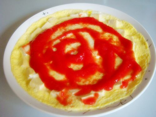 及以下步骤:放入微波炉用大火蒸3分钟。 从微波炉中取出来。 浇上番茄酱,就可以吃了。 两个鸡蛋磕到碗里。 搅打均匀。 豆腐里倒入蛋液。 放料酒、盐拌匀。 放入微波炉用大火蒸3分钟。 从微波炉中取出来。 浇上番茄酱,就可以吃了。