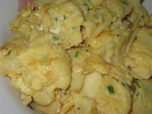 蛋液中盐不要多放,因为炒茭白时也要放些盐的。