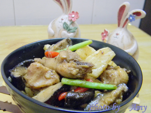 及以下步骤:加入山药一起炒一会,这时可加入少许生抽 加入香菇炒翻炒 锅内加入一小碗水,盖上锅盖小火焖干加入辣椒 加入调料葱断炒均匀即可 上桌啦,开吃筒子们 再来一张图吧 锅内加入一小碗水,盖上锅盖小火焖干加入辣椒 加入调料葱断炒均匀即可 上桌啦,开吃筒子们 再来一张图吧