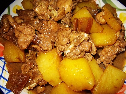 6、加水加盐煮15分钟,再加土豆炖至汤汁收干。