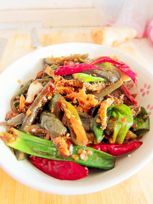 4、锅内入油烧4成热,下葱姜蒜干辣椒煸炒出香