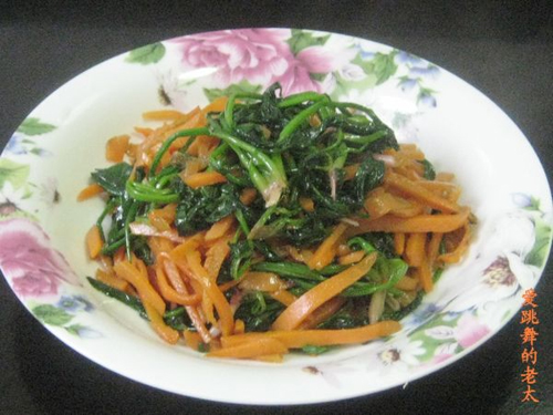 胡萝卜丝炒菠菜烹饪方法 图片大全及制作所需厨具设备是网友推荐小编整理所得,是网友的分享推荐,是饮食文化的资源共享,中华美食文化是中华文明的具体践行,美食胡萝卜丝炒菠菜烹饪制作就是在传承中华文化。