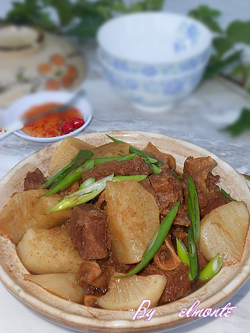 1. 萝卜带苦味,煮过才放入牛腩里,而且要在牛腩煮至一定程度后才放入,这样萝卜会更加鲜甜。