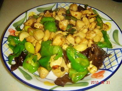 及以下步骤:准备好食材:鸡丁、花生、白果、腰果。 先炒青椒和白果。 准备好食材:鸡丁、花生、白果、腰果。 先炒青椒和白果。 准备好食材:鸡丁、花生、白果、腰果。 先炒青椒和白果。 准备好食材:鸡丁、花生、白果、腰果。 先炒青椒和白果。 下鸡丁、辣豆豉炒至变色 下腰果、花生,加盐炒熟。