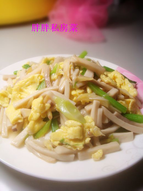 杏鲍菇炒鸡蛋--咸鲜口味 杏鲍菇营养丰富,富含蛋白质、碳水化合物、维生素及钙、镁、铜、锌等矿物质,可以提高人体免疫功能,对人体具有抗癌、降血脂、润肠胃以及美容等作用。