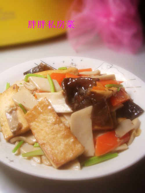 及以下步骤:放入杏鲍菇翻炒。 泡发好的木耳洗净。 放入锅中翻炒均匀,加点水。 放入豆腐炖5分钟。 放入盐、白糖翻炒均匀。 放入香菜翻炒,加香油、味精调味即可。 放入锅中翻炒均匀,加点水。 放入豆腐炖5分钟。 放入盐、白糖翻炒均匀。 放入香菜翻炒,加香油、味精调味即可。