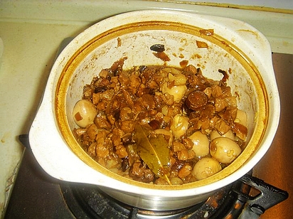 鹌鹑蛋的营养价值不亚于鸡蛋,丰富的蛋白质、脑磷脂、卵磷脂、赖氨酸、胱氨酸、维a、维b2、维b1、铁、磷、钙等营养物质,可补气益血,强筋壮骨。 鹌鹑蛋被认为是 动物中的人参。宜常食为滋补食疗品。 适宜婴幼儿,孕产妇、老人、病人及身体虚弱的人食用。 香菇,又名香蕈、冬菇,是一种生长在木材上的真菌类,在我国已有4000多年的食用历史。香菇味道鲜美,香气沁人,营养丰富,素有植物皇后美誉。在日本,认为香菇和银耳同是防老长寿的妙药。 这款香卤肉,肉味香浓,炖两个小时,开盖香味四溢,很适合秋冬季节。