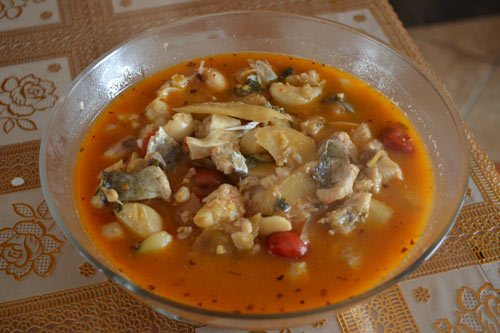 及以下步骤:加入清水,煮出味道后,将煎好的大蒜倒入锅中,开大火,水烧沸后,转小火,熬出味。 放入鲢鱼块,以及调料。 小火煮十余分钟后,盛入大碗中。 美味的大蒜鲢鱼乘热吃。 大蒜入油锅,煎炒至出香味,微黄,捞起。 不换油,直接放入泡椒、泡姜、葱花、姜末。 加入清水,煮出味道后,将煎好的大蒜倒入锅中,开大火,水烧沸后,转小火,熬出味。 放入鲢鱼块,以及调料。 小火煮十余分钟后,盛入大碗中。 美味的大蒜鲢鱼乘热吃。