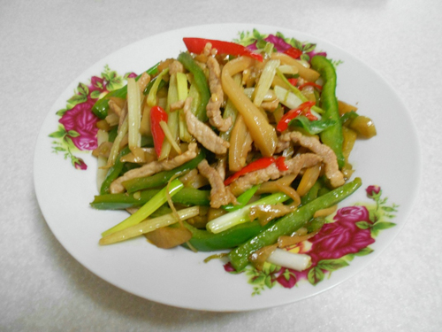 青椒(50g) / 红辣椒(10) / 猪肉(100g) / 芹菜(50g) / 榨菜(100g)