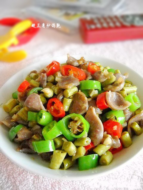 美味酸豆角炒鸽肫制作步骤: