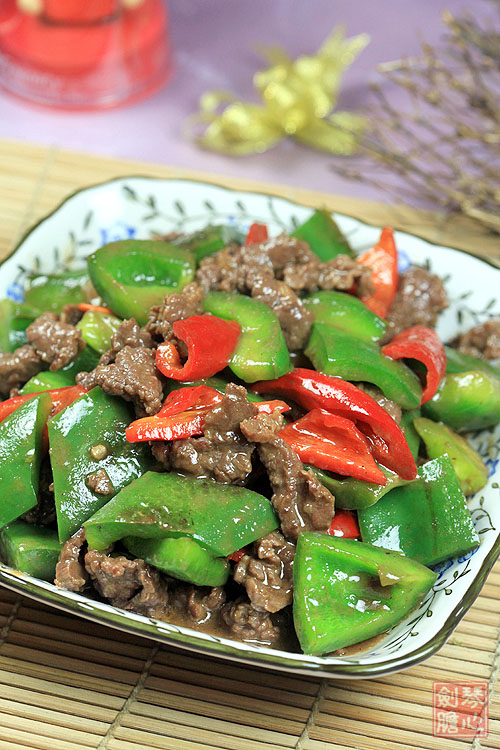 牛肉和辣椒,是一对很好的搭配,辣椒,可以辟掉牛肉的腥味,而牛肉,又可以令辣椒吃起来味道不那么单调。一般来说,辣椒在餐桌上只是一味调味或者说配菜,不过,这道菜里,辣椒可是主料。这道菜用的是青椒,也即园椒,对不吃辣的童鞋来说,是一个不错的选择,毕竟不是每个人都能够吃辣的。