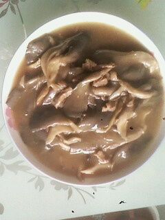 1、蘑菇、里脊处理好备用,葱 姜 切好备用。