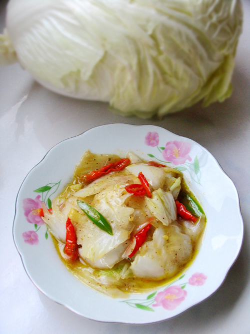 白菜真是个好东西,它含有丰富的粗纤维,不但能起到润肠、促进排毒的作用,而且具有刺激肠胃蠕动,促进大便排泄,帮助消化(消化食品)的功能。对预防肠癌有良好作用。 此时正值空气特别干燥的冬季,寒风对人的皮肤伤害极大。白菜中含有丰富的维生素c、维生素e,多吃白菜,可以起到很好的护肤和养颜效果。 最最关键的是它价廉,这会已经卖到了两三毛钱一斤。实惠呐! 可是,这么经济实惠的蔬菜,如果做不好了吃起来没味道,自然让人没了胃口。那就不妨给它来点酸,再来点微微的辣……